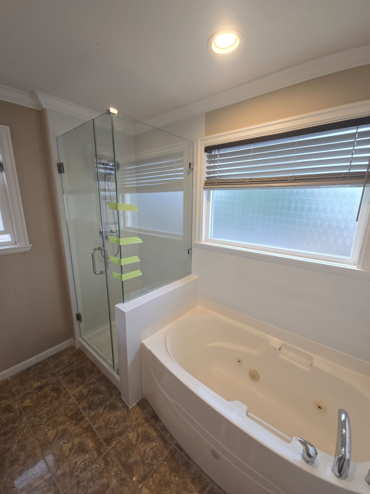 This shower renovation began as a design upgrade and revealed a concealed leak behind the existing tile. Fortunately, the issue was identified early, with no structural damage present. The shower pan was replaced and upgraded with the Schluter waterproofing system to ensure superior moisture protection and long-term performance. The finished space features elegant white tile paired with a sleek, modern glass enclosure, delivering a refined, timeless aesthetic with enhanced durability.